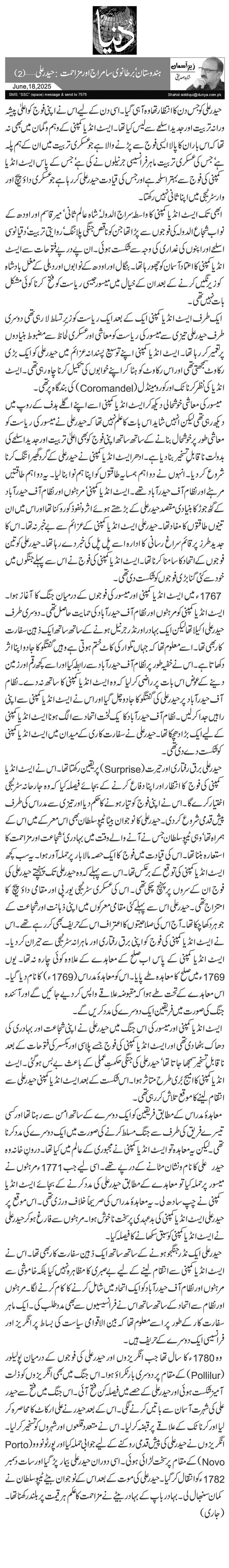 وہ 1780ء کا سال تھا جب انگریزوں اور حیدر علی کی فوجوں کے درمیان پولیلور (Pollilur) کے مقام پر دوسری بار ٹکراؤ ہوا۔ اس جنگ میں بھی انگریزوں کو ذلت آمیز شکست ہوئی اور حیدر علی کے حصے میں فیصلہ کن فتح آئی۔ اس جنگ میں فتح سے حیدر علی کی شہرت آسمان سے باتیں کرنے لگی۔ اس کے بعد حیدر نے علی ارکاٹ کا محاصرہ کر لیا اور کرناٹک کے علاقے پر قبضہ کر لیا۔ اس نے متعدد قلعوں اور شہروں کو تسخیر کر لیا۔ انگریزوں نے حیدر علی کی پیش قدمی روکنے کے لیے جوابی حملہ کیا اور پورٹو نووو (Porto Novo) کے مقام پر سخت لڑائی ہوئی۔ اسی دوران حیدر علی بیمار پڑ گیا اور سات دسمبر 1782ء کو انتقال کر گیا۔ حیدر علی کی موت کے بعد اس کے نوجوان بیٹے ٹیپو سلطان نے کمان سنبھال لی۔ بہادر باپ کے بہادر بیٹے نے مزاحمت کا عَلم ہر قیمت پر بلند رکھنا تھا۔ (جاری)