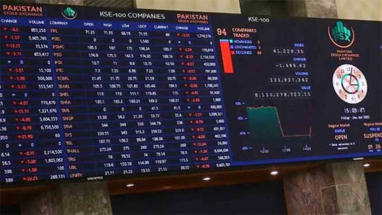 اس دوران سرمایہ کاروں کو 40ارب روپے کا منافع ہوا جس کے نتیجے میں سرمائے کا مجموعی حجم 14768 ارب روپے پر جاپہنچا۔ تفصیلات کے مطابق ملک میں عیدالاضحی کی تعطیلات کے بعد کاروبار کے پہلے ہی دن منگل کو بازارِ حصص میں سرمایہ کاروں کا اعتماد بحال ہونے کی وجہ سے مارکیٹ میں تیزی دیکھی گئی ۔ ٹریڈنگ کے دوران ایک موقع پر 100 انڈیکس 970 پوائنٹس کے اضافے سے 122,611.53 پوائنٹس کی بلند ترین سطح پر بھی جاپہنچا تھا۔خریداری کا رجحان اہم شعبوں میں دیکھنے میں آیا ۔کاروبار کے اختتام پر کے ایس ای 100 انڈیکس 383 پوائنٹس یا 0.32 فیصد اضافے سے ملکی تاریخ میں پہلی بار ایک لاکھ 22ہزار24پوائنٹس کی بلند ترین سطح پربند ہوا۔اسی طرح کے ایس ای 30انڈیکس 74 پوائنٹس کے اضافے سے 36902پوائنٹس اور آل شیئرزانڈیکس209پوائنٹس کے اضافے سے 76160پوائنٹس پر بند ہوا۔اسٹاک مارکیٹ میں بجٹ والے دن 22 ارب روپے مالیت کے 600 ملین شیئرز کی نمایاں تجارت ہوئی۔ مجموعی طور پر473کمپنیوں کے حصص کا کاروبار ہوا جس میں سے 230کمپنیوں کے حصص کی قیمتوں میں اضافہ ،200میں کمی اور43میں استحکام رہا۔