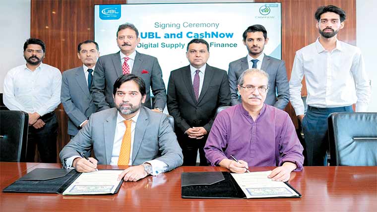 معاہدے پر یو بی ایل کے ہیڈ آفس کراچی میں دستخط کیے گئے۔ شراکت داری کے تحت کیش ناؤ، یو بی ایل کیلئے ڈیجیٹل سپلائی چین فنانس سلوشن فراہم کرے گا، جس کے ذریعے بینک کے صارفین اپنی منظور شدہ انوائسز کے بدلے میں قبل از وقت ادائیگیاں حاصل کر سکیں گے ۔یو بی ایل کے گروپ ایگزیکٹو، برانچ بینکنگ گروپ عبدالعلیم قریشی نے کہاکہ یو بی ایل تمام کاروباری شعبوں میں ترقی کے فروغ کیلئے پُرعزم ہے، بالخصوص چھوٹے اور درمیانے درجے کے کاروبارکی معاونت ہمارا خاص مقصد ہے۔ کیش ناؤکے ڈائریکٹر اور شریک بانی سعید اقبال نے کہا کہ ہمارے لیے یہ اعزاز کی بات ہے کہ یو بی ایل نے ہمیں اس اہم سپلائی چین فنانس اقدام کے لیے منتخب کیا ہے۔ یہ اشتراک سپلائی چین فنانس میں مالیاتی اور عملی معیار کو فروغ دینے کی جانب ایک اہم قدم ہے۔