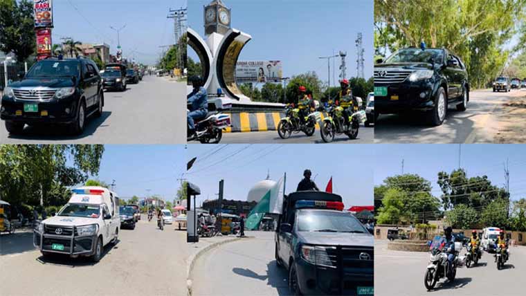 ضلعی پولیس کی جانب سے فلیگ مارچ کیا گیا۔ جس میں پولیس کے ساتھ ساتھ فوج اور ایلیٹ فورسز کے چاق و چوبند دستے بھی شریک ہوئے ۔تفصیلات کے مطابق فیصل آباد کے شہریوں کو تحفظ کا احساس دلانے کیلئے پنجاب پولیس کی جانب سے شہر بھر کے مختلف علاقوں میں فلیگ مارچ کیا گیا۔ جس میں پولیس، ایلیٹ فورس اور رینجرز کے چاق و چوبند دستوں نے شرکت کی، فلیگ مارچ پولیس لائنز سے شروع ہوا اور گمٹی چوک، ضلع کچہری، بکر منڈی روڈ، مرکزی امام بارگاہ، جی سی یونیورسٹی اورغلام محمد آباد سے ہوتا ہوا شہر کے دیگر مقامات کی جانب گامزن ہوا۔ فلیگ مارچ میں رینجرز، ایلیٹ فورس، پولیس موبائل، موٹرسائیکل سکوارڈ اور کیو آر ایف کے جوانوں نے بھی شرکت کی۔ ، پولیس کی گاڑیوں میں چاک و چوبند دستے شہریوں کو یہ احساس دلاتے رہے کہ ہمارے سکیورٹی ادارے وطن عزیز کی سلامتی اور آن کی بقاء کے لئے مر مٹیں گے ، ملکی صورتحال کو دیکھتے ہوئے امن کا پیغام عیاں کرتی ضلعی پولیس کا فلیگ مارچ پولیس لائنز پہنچ کر اختتام پزیر ہوگیا۔