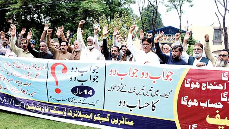 گیپکو ایمپلائزہائوسنگ فائونڈیشن کے متاثرین کا احتجاج