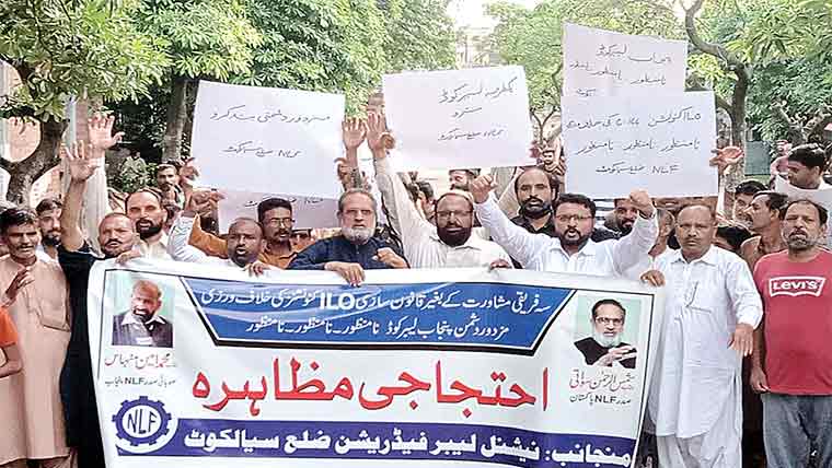 نیشنل لیبر فیڈریشن سیالکوٹ کا لیبر کوڈ کیخلاف احتجاجی مظاہرہ
