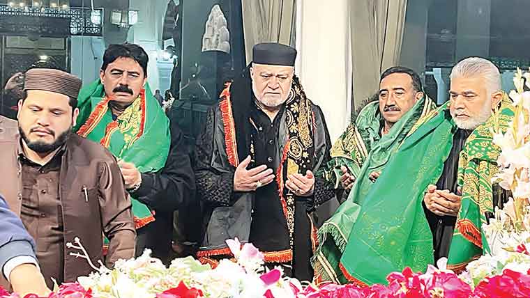 ، انہوںنے ملکی سلامتی ، استحکام و خوشحالی اور سانحہ بلوچستان کے شہدا کی مغفرت کے لئے خصوصی دعا کی،بعد ازاں انہوں نے گفتگو کرتے ہوئے کہا ملک میں امن و امان کے قیام کیلئے کے لئے پاک فوج اورسکیورٹی اداروں کا کلیدی کردار ہے ، دہشتگردی کے خلاف جنگ میں پوری قوم پاک فوج اورسکیورٹی اداروں کے ساتھ ہے ،انہوں نے مزید کہا درگاہیں امن و سلامتی، بھا ئی چا رے کا درس دیتی ہیں، موجودہ حکومت غربت کے خاتمہ کے لئے تمام ممکنہ اقدامات کر یگی ،میں بغیر کسی تفریق کے لوگوں کی خوشحالی کے لئے کام کرونگا۔