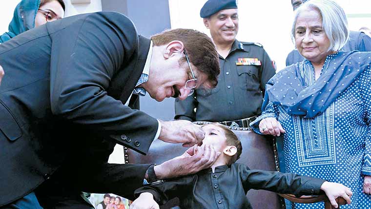 وزیراعلیٰ سندھ سید مراد علی شاہ نے انسداد پولیو مہم کی تقریب سے خطاب کرتے ہوئے کہا کہ پولیو کے خاتمے کے لیے حکومت سندھ پرعزم ہے ۔ بچوں کو معذوری سے بچانا ہم سب کی اجتماعی ذمہ داری ہے۔ انہوں نے کہا کہ سندھ میں انسداد پولیو مہم کے دوران 1کروڑ سے زائد بچوں کو پولیو کے قطرے پلائے جائیں گے ، ایک کروڑ چھ لاکھ بچوں میں سے شہر کراچی میں 5 سال سے کم عمر 27 لاکھ بچوں کو پولیو ویکسین دی جائے گی۔وزیر اعلیٰ نے کہا کہ تقریباً 69724 تربیت یافتہ پولیو ورکرز گھر گھر جا کر بچوں کو پولیو سے بچاؤ کے قطرے پلانے کے علاوہ اسکولوں، شاپنگ مالز اور ٹرانزٹ پوائنٹس پر بھی پولیو ویکسین کی فراہمی یقینی بنائی جائے ۔سکیورٹی کے حوالے سے مراد علی شاہ نے کہاکہ فول پروف انتظامات، پولیو ورکرز کی حفاظت کیلئے 25360 پولیس اہلکار تعینات کیے گئے ہیں۔مراد علی شاہ نے والدین کو پیغام دیا کہ اپنے بچوں کو پولیو کے قطرے ضرور پلائیں، پولیو کا کوئی علاج نہیں، صرف ویکسین ہی معذوری سے بچا سکتی ہے ، یہی ویکسین دنیا سے پولیو کے خاتمے کا سبب بنی۔ حج و عمرہ پر جانے والے افراد کو بھی یہی پولیو ویکسین دی جاتی ہے ۔تقریب میں وزیرصحت ڈاکٹرعذرافضل پیچوہو،چیف سیکریٹری،آئی جی اوردیگرشریک ہوئے۔