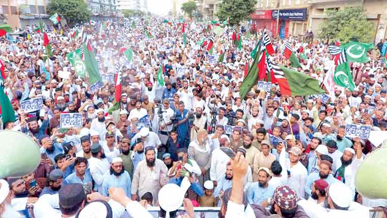 کراچی میں لسبیلہ چوک نکالے گئے عظیم الشان تحفظ ناموس رسالتﷺو مدح صحابہ مطالباتی جلوس سے خطاب کرتے ہوئے صدراہلسنت والجماعت پاکستان علامہ اورنگزیب فاروقی،صدر کراچی علامہ رب نوازحنفی ،مولانا محی الدین شاہ، مولانا عادل عمر ودیگر نے کہاکہ سیدنا عثمان غنیؓ 12 سال تک خلیفہ رہے اور کئی ممالک فتح کرکے خلافت اسلامیہ میں شامل کیے ۔سیدنا عثمان کے دور خلافت میں ہی بحری جہاد کا آغاز ہوا۔بحری جہاد کی ابتداکرنے والے لشکر کے لیے جنت کی خوش خبری نبی کریم ؐاپنی لسان مبارکہ سے ارشاد فرما چکے تھے ۔سیدنا عثمان پیکرِشرم وحیا و جود و سخاتھے ۔متعدد مرتبہ نادار اور مجبور مسلمانوں کیلئے اپنا مال فی سبیل اﷲ خرچ کیا اور کئی دفعہ جہاد کے لیے مالی طور پر نبی کریمﷺکی خدمت میں مال و زر پیش کیا۔امامِ جود و سخا، پیکرِ شرم و حیا، کاتبِ ِوحی حضرت سیدنا عثمان ؓ نے اپنی جان کا نذرانہ پیش کردیا لیکن اپنے وطن مدینہ منورہ میں خون نہیں بہایا ۔