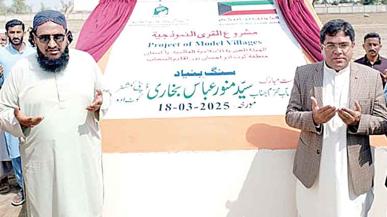 ،کویت کی فلاحی تنظیم کی جانب سے پہلے فیزمیں ایک سو گھر،ہسپتال، مسجد، ہینڈی کرافٹ سنٹر،کمیونٹی سنٹربھی بنائے جائیں گے ۔ تفصیل کے مطابق پنجاب حکومت کی جانب سے قصبہ احسانپورمیں دئیے گئے 90کنال رقبہ پر بننے والے نئے ماڈل ویلج کا ڈپٹی کمشنرکوٹ ادو سیدمنور عباس بخاری نے افتتاح کردیا، ڈپٹی کمشنرکوٹ ادو سیدمنورعباس بخاری نے خطاب کرتے ہوئے کہا کہ پنجاب حکومت نے سیلاب سے متاثرین سمیت دریائی کٹاؤ سے متاثرین کیلئے 90کنال اراضی وقف کی ہے جسے کویت کی تنظیم اس پر خوبصورت ماڈل ویلج قائم کررہی ہے ، پنجاب حکومت نے اس ماڈل ویلج میں ڈسپوزل سسٹم لگادیا ہے ،مزید بھی اس ویلج میں انفراسٹرکچرپرکام کی کوشش کی جائے گی،ڈائریکٹر ماڈل ویلج احسانپور عبدالحئی انیس نے کہاکہ اس قابلِ تعریف منصوبے کو تاریخ میں یاد رکھا جائے گا، یہ منصوبہ کویت کی تنظیم آئی آئی سی یو کا ہے جہاں 200گھر تعمیر کئے جائیں گے ،پہلے فیزمیں ایک سو گھر،ہسپتال، مسجد، ہینڈی کرافٹ سنٹر،کمیونٹی سنٹربھی بنائے جائیں گے ، علاقے بھر کو خوبصورت بنانے کا مشن ہے اورانشائاللہ احسانپور ماڈل ویلج میں سڑکیں،لائٹنگ،سپیڈ بریکر اور دیواروں کو خوبصورت بنایاجائے گا۔