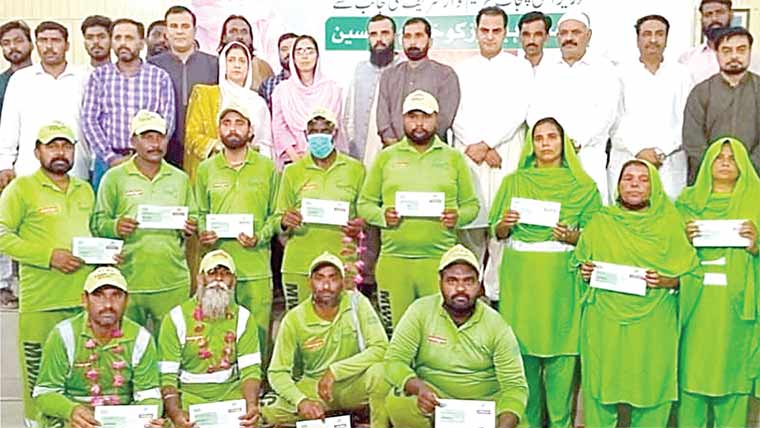 بہترین صفائی پر سینٹری ورکرز میں انعامی رقوم کے چیک تقسیم