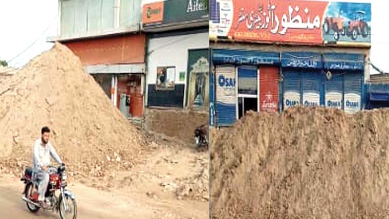 دکانوں کے سامنے مٹی کے ڈھیر‘ تاجر پریشانی سے دوچار