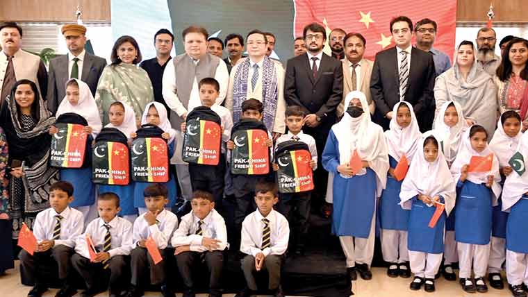 ایڈیشنل چیف سیکرٹری سائوتھ پنجاب فواد ہاشم ربانی نے ان کا خیر مقدم کیا۔سکائوٹس نے سلامی دی،طالبات نے ڈرم کی بیٹ پر پاکستان اور چین کے پرچم لہرائے ۔اس موقع پر پاک چین دوستی کے گیت اور دونوں ممالک کے ترانے بجائے گئے جبکہ بچوں نے پاک چین دوستی کے حوالے سے خوبصورت ٹیبلوز پیش کئے ۔ چینی قونصل جنرل ژاو شیریں نے تقریب سے خطاب کرتے ہوئے سکول میں نئے داخل ہونیوالے 1300بچوں کو یونیفارم، شوز، سکول بیگز اور سٹیشنری سپانسر کرنے کا اعلان کیا اور کہا کہ بچوں کو سکول لانے کے لئے جنوبی پنجاب سیکرٹریٹ کی مہم کا بھرپور ساتھ دیا جائے گا۔انہوں نے کہا کہ خطے میں انفراسٹرکچر کی تعمیر اور معاشی اور سماجی ترقی میں کردار ادا کیا جائے گا۔ ان کا کہنا تھا کہ تعلیم، زراعت، اور آئی ٹی کے شعبے میں تعاون کے وسیع مواقع موجود ہیں۔ژاو شیریں نے مزید کہا کہ پاک چین دوستی نئی بلندیوں کی طرف گامزن ہے ۔ایڈیشنل چیف سیکرٹری سائوتھ پنجاب فواد ہاشم ربانی نے ژاو شیریں کا شکریہ ادا کیا اور کہا کہ چین کی جانب سے جنوبی پنجاب کے مختلف شعبوں میں تعاون اور شراکت داری کو فروغ دیا جا رہا ہے ۔ انہوں نے کہا کہ اب یہ ایک ضرب المثل کی صورت اختیار کر گئی ہے کہ پاک چین دوستی شہد سے میٹھی، سمندر سے گہری اور کے ٹو سے زیادہ بلند ہے اور یہ دوستی دنیا میں باہمی اعتماد اور احترام کی مثال بن چکی ہے ۔فواد ہاشم ربانی نے \\\"زیرو آئوٹ آف سکول چلڈرن\\\" پروگرام کا پس منظر بتاتے ہوئے کہا کہ شرح خواندگی بڑھانے کے لیے یہ مہم شروع کی گئی اور ملتان، بہاولپور، لیہ کی چار چار یونین کونسلز میں پائلٹ پراجیکٹ شروع کیا گیا جس کے شاندار نتائج سامنے آئے ۔اس طرح ضلع لیہ کی تمام یونین کونسلز میں اس مہم کا باقاعدہ آغاز کیا گیا اور 5 ہزار بچے سکول داخل کئے گئے ۔اس مہم پر حکومت کا ایک پیسہ بھی خرچ نہیں ہوا اور نجی سپانسرز کے ذریعے مفت یونیفارم، جوتے ، بیگز، اور سٹیشنری پر مشتمل کٹ سٹوڈنٹس فراہم کی گئی۔