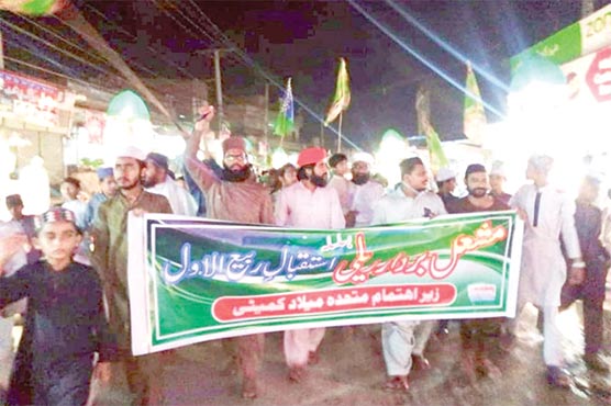 استقبال ربیع الائول کیلئے متحدہ میلاد کمیٹی کی مشعل بردار ریلی