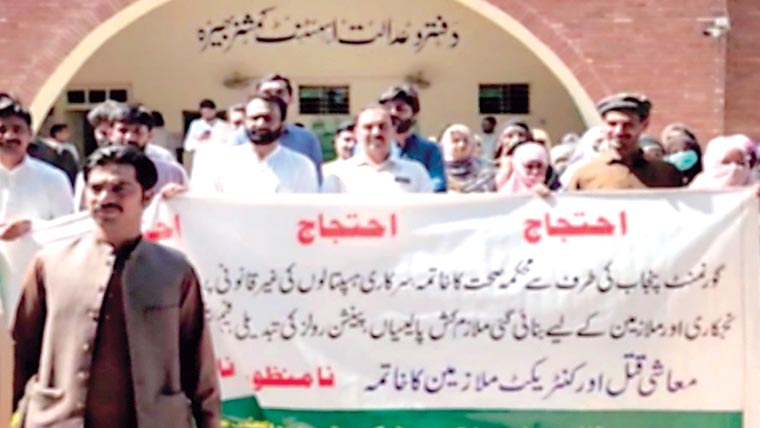 بنیادی مراکز صحت اور رورل ہیلتھ سنٹر کے ملازمین کا احتجاج