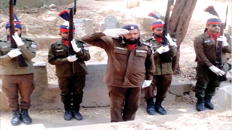 اور شہید کی عظیم قربانی کو خراج تحسین پیش کیااور پولیس کے چاق و چوبند دستے نے شہید کی قبر پر سلامی دی اور پھولوں کی چادر چڑھائی ،اس موقع پر شہید کی روح کے ایصال ثواب اور بلندی درجات کے لیے دعا کی گئی جبکہ ڈی پی او کا کہنا تھا کہ شہدائے پولیس ہمارا فخر ہیں اور انکی تکریم ہم پر لازم ہے پولیس شہداء کے ورثاء کا خیال رکھنا ہماری ذمہ داری ہے ۔