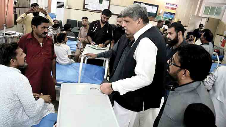 اور انتظامی و طبی امور کا تفصیلی جائزہ لیا۔ انہوں نے ایمرجنسی، سرجیکل وارڈز اور محرم الحرام کے دوران عزاداروں کے لیے قائم خصوصی وارڈز کا معائنہ کیا۔کمشنر نے مریضوں اور ان کے لواحقین سے براہ راست ملاقات کرکے علاج و معالجے کی سہولیات سے متعلق دریافت کیا اور فوری بہتری کے لیے احکامات جاری کیے ۔ اس موقع پر صفائی کی صورتحال، ادویات کی فراہمی، عملے کی حاضری، آکسیجن اور ایئرکنڈیشنڈ کی دستیابی سمیت دیگر امور کا جائزہ لیا گیا۔ایم ایس ڈاکٹر سہیل طارق نے کمشنر کو بریفنگ دیتے ہوئے بتایا کہ ایمرجنسی میں سو فیصد مفت ادویات فراہم کی جا رہی ہیں، جبکہ عزاداروں کے لیے 57 بیڈز پر مشتمل خصوصی وارڈز قائم کیے گئے ہیں۔ رحمت اللعالمین بلاک میں 12 وارڈز جبکہ پیڈ بلاک میں 45 بیڈز کی ایمرجنسی فعال ہے ۔ ایم ایس نے مزید آگاہ کیا کہ ہسپتال میں جلد نیورو سرجیکل وارڈ بھی قائم کیا جا رہا ہے ۔کمشنر جہانزیب اعوان نے واضح ہدایات جاری کرتے ہوئے کہا کہ وزیراعلیٰ پنجاب مریم نواز شریف کی ہدایت ہے کہ ہر مریض کو علاج، دوا، عزت اور سہولت ہر صورت مہیا کی جائے ۔
