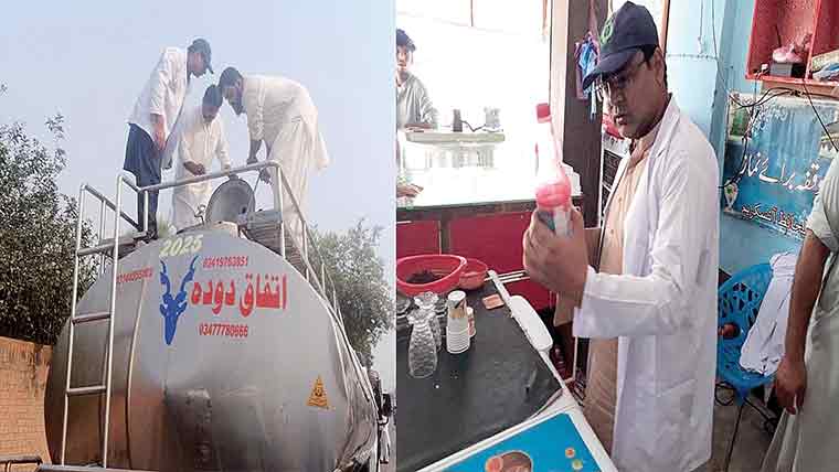 ہدایات کی روشنی میں پنجاب فوڈ اتھارٹی میانوالی کی ٹیم گزشتہ ہفتے بھرپور ایکشن میں رہی۔ ضلع بھر میں فوڈ بزنسز جیسے ہوٹل، کریانہ سٹورز، فوڈ پوائنٹس، گوشت و دودھ کی دکانیں اور مٹھائی بنانے والے کارخانوں کی سخت چیکنگ کا سلسلہ جاری رہا۔میانوالی کے داخلی و خارجی راستوں پر ناکہ بندی کرکے دودھ لے جانے والی گاڑیوں اور موٹر سائیکلوں کی چیکنگ کی گئی، جس کے دوران 46,200 لیٹر دودھ کا تجزیہ کیا گیا۔چیکنگ کے دوران فوڈ اتھارٹی قوانین کی خلاف ورزی پر فوری کارروائی کرتے ہوئے 1 کلوگرام مختلف مضر صحت اشیائے خور و نوش,3 لیٹر غیرمعیاری مشروبات,1 کلوگرام ناقص بسکٹ 10کلوگرام مضر صحت مصالحہ جات 13 کلوگرام ممنوعہ کھانے کی اشیاء17 کلوگرام غیرمعیاری دالیں,50 کلوگرام ناقص قلفی ضائع کر دی گئی۔علاوہ ازیں مجموعی طور پر مختلف خلاف ورزیوں پر روپے 2,11,000 کا جرمانہ بھی عائد کیا گیا۔پنجاب فوڈ اتھارٹی کی جانب سے جاری کارروائیاں اس عزم کی غماز ہیں کہ عوام کو معیاری اور محفوظ خوراک کی فراہمی میں کسی قسم کی کوتاہی برداشت نہیں کی جائے گی۔