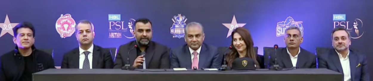 پی ایس ایل کی 2 نئی ٹیموں کی کامیاب نیلامی کے بعد چیئرمین پی سی بی محسن نقوی نے دونوں ٹیموں کے نئے مالکان کے ساتھ پریس کانفرنس کرتے ہوئے کہا کہ آج کی نیلامی پی ایس ایل ،پی سی بی اور پاکستان کی کامیابی ہے۔