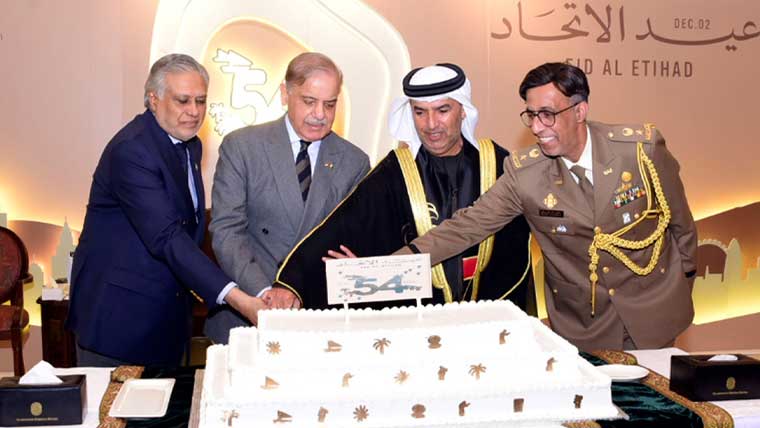 وفاقی دار الحکومت میں متحدہ عرب امارات کے قومی دن کے موقع پر تقریب میں وزیراعظم شہباز شریف نے بطور مہمان خصوصی شرکت کی، اس موقع پر نائب وزیراعظم و وزیر خارجہ سینیٹر اسحاق ڈار، وفاقی وزراء ، ارکان پارلیمان اور غیرملکی سفارتکاروں کی بڑی تعداد بھی موجود تھی۔
