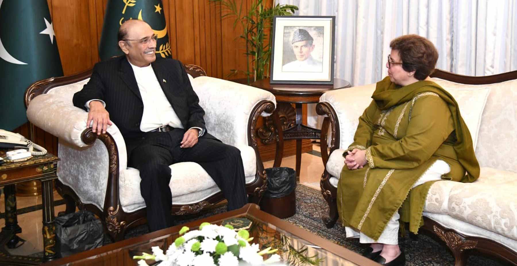 صدر مملکت سے آئرلینڈ کیلئے نامزد پاکستانی سفیر مریم مدیحہ نے بھی ملاقات کی، آصف زرداری نے پاکستان اور آئرلینڈ کے درمیان اقتصادی شراکت داری بڑھانے کی ضرورت پر زور دیا، آئرش سرمایہ کاروں کو پاکستان کے خصوصی اقتصادی زونز میں سرمایہ کاری پر توجہ دلوانے کی ہدایت کی۔
