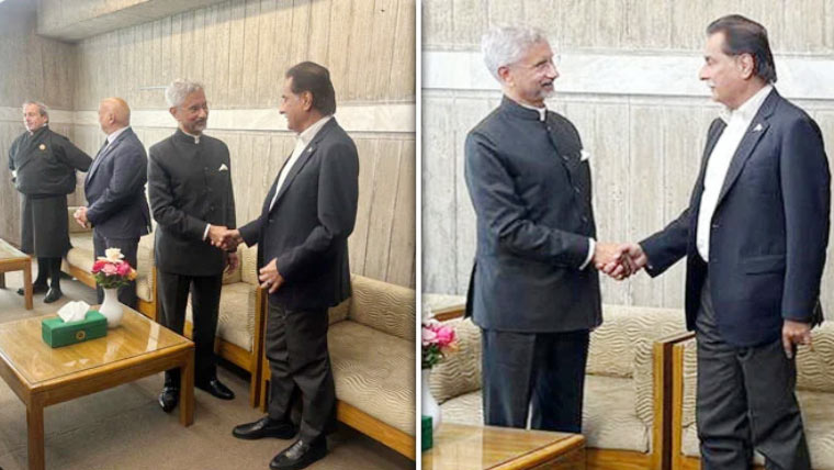 بھارتی وزیر خارجہ جے شنکر خود چل کر سپیکر قومی اسمبلی سردار ایاز صادق کے پاس آئے اور دونوں کے درمیان خوشگوار جملوں کا تبادلہ بھی ہوا۔