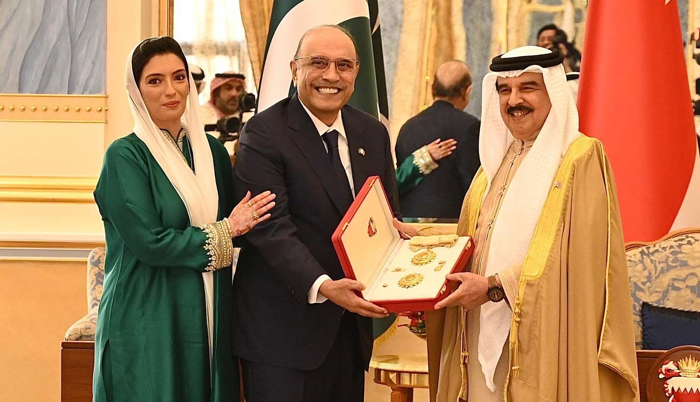 قصر القضیبیہ آمد پر صدرِ مملکت کو گارڈ آف آنر پیش کیا گیا، صدر آصف علی زرداری کو بحرین کا اعلیٰ ترین ایوارڈ وسام الشيخ عيسى بن سلمان آل خليفة من الدرجة الأولى عطا کیا گیا۔