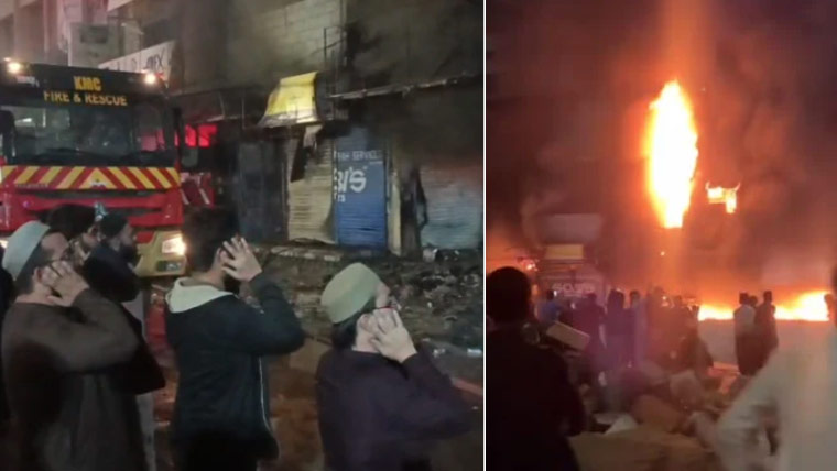 ایم اے جناح روڈ پر خوفناک آتشزدگی: تاجر گل پلازہ کے باہر اذانیں دینے لگے