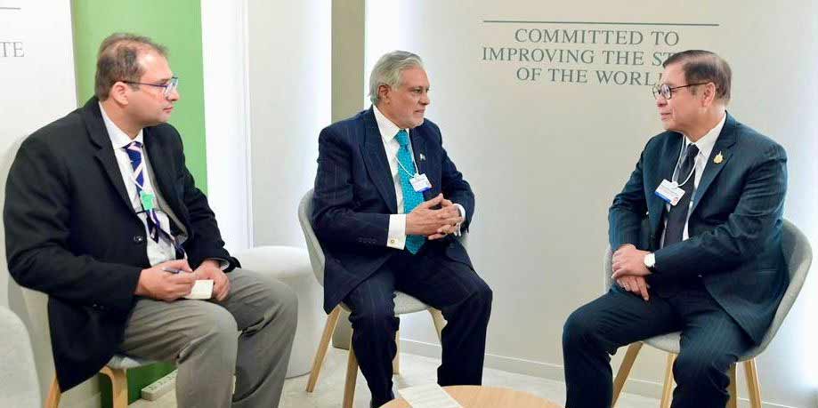 ڈیووس: (دنیا نیوز) نائب وزیراعظم و وزیر خارجہ اسحاق ڈار کی تھائی لینڈ کے وزیر خارجہ سیہاسک پھوانگ کِیٹ کیو سے ملاقات ہوئی۔