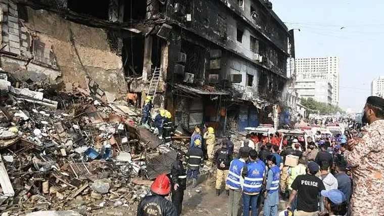 ڈی سی ساؤتھ جاوید نبی کھوسو کا کہنا ہے عمارت کو آج سیل کر دیں گے، مسنگ 13 افراد کے لواحقین نے رابطہ کیا نہ ڈی این اے نمونے دیئے، 55 افراد کے لواحقین نے ڈی این اے نمونے جمع کرائے، معاوضوں کی ادائیگی کیلئے حکومت کو 30 لاشوں کا ڈیٹا بھیج دیا، ورثا میں جلد چیک تقسیم کئے جائیں گے۔