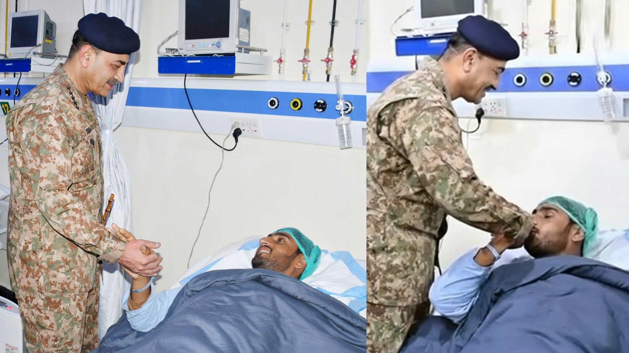 ترجمان پاک فوج نے بتایا کہ سیدعاصم منیر نے ہسپتال میں زخمیوں کی عیادت کی، اںہوں نے زخمی فوجیوں، ایف سی، پولیس اہلکاروں سےملاقاتیں بھی کیں۔
