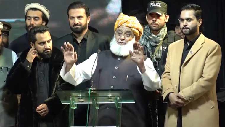 جمعیت علمائے اسلام کے سربراہ مولانا فضل الرحمان نے ایک عوامی اجتماع سے خطاب میں کہا کہ ملک میں الیکشن کمیشن کٹھ پتلی بن چکا ہے اور انتخابات کے نتائج تیار کرنے کی بجائے باہر سے آنے والے نتائج پر عمل کیا جا رہا ہے، 2 سال قبل ہونے والے عام انتخابات کے نتائج کو مسترد کیا گیا تھا، مگر آج اسی جعلی مینڈیٹ کے سہارے ملک پر حکمرانی کی جا رہی ہے۔