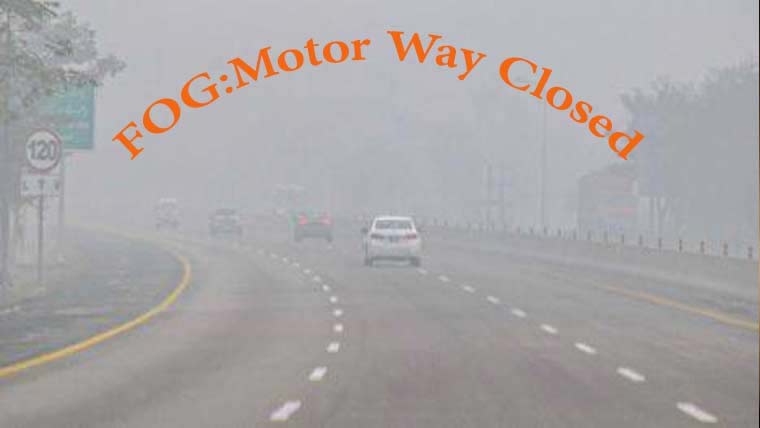 لاہور سے جڑانوالہ تک موٹروے ایم 3 دھند کی وجہ سے بند