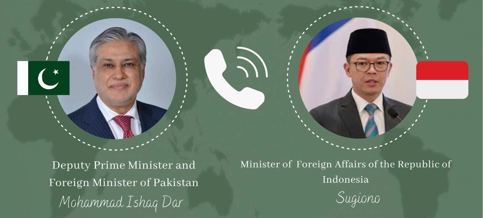 نائب وزیراعظم اسحاق ڈار نے انڈونیشیا کے وزیر خارجہ سے ٹیلی فونک بات چیت کے دوران علاقائی اور بین الاقوامی امور سمیت دو طرفہ دلچسپی کے معاملات پر تبادلہ خیال کیا۔