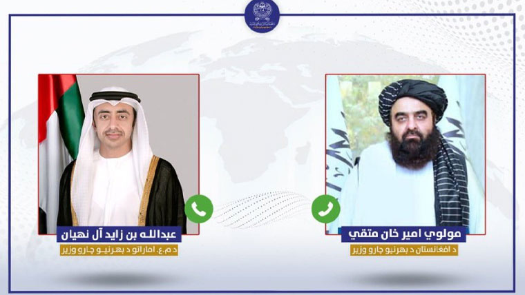 افغان وزارت خارجہ کی جانب سے جاری بیان کے مطابق مولوی امیر خان متقی نے متحدہ عرب امارات کے نائب وزیر اعظم اور وزیر خارجہ عبداللہ بن زاید ال نہیان کے ساتھ ٹیلی فون پر بات چیت کی۔