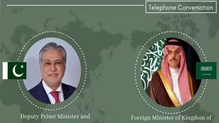 دفتر خارجہ کے مطابق نائب وزیراعظم اور سعودی وزیر خارجہ نے خطہ کی صورتحال پر تبادلہ خیال کیا، دونوں رہنمائوں نے لبنان میں جنگ بندی کی خلاف ورزی پر تشویش ظاہر کی۔