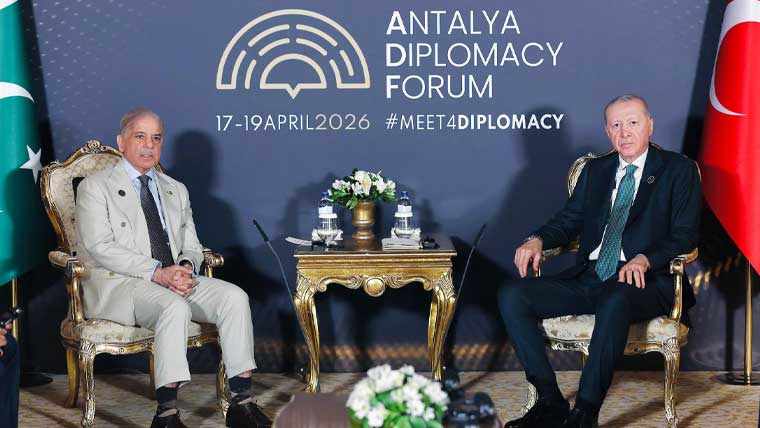 انطالیہ: (دنیا نیوز) وزیراعظم شہباز شریف کی انطالیہ ڈپلومیسی فورم کے موقع پر ترکیہ کے صدر طیب اردوان سے ملاقات کی، جس میں دوطرفہ تعلقات اور خطے کی صورتحال پر تفصیلی تبادلہ خیال کیا گیا۔