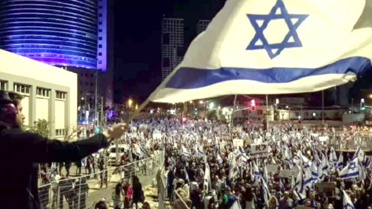 تل ابیب میں جنگ کے خلاف مظاہرہ، خطے میں امن کے قیام کے حق میں نعرے بازی