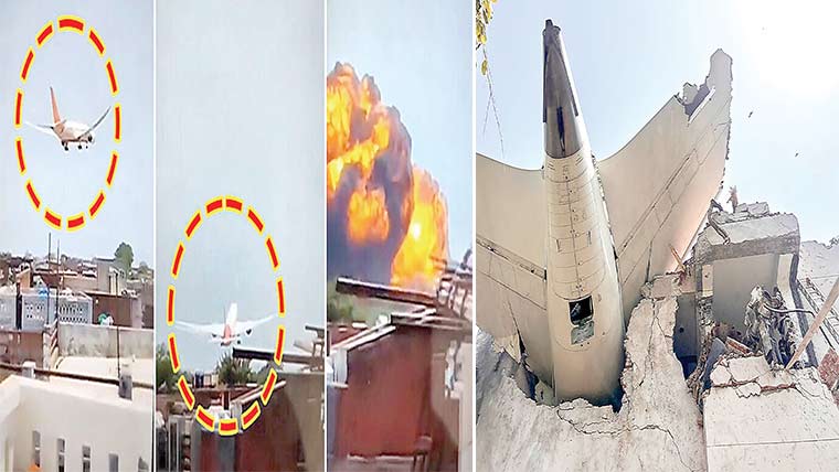 حادثے کے بعد احمد آباد ایئر پورٹ پر فلائٹ آپریشن بند کردیا جبکہ ہسپتالوں میں ایمرجنسی نافذ کردی گئی ۔فلائٹ ریڈار کے مطابق اڑان بھرنے کے بعد ایک منٹ سے بھی کم وقت میں 625 فٹ کی بلندی پر طیارے سے رابطہ منقطع ہو گیا تھا۔بھارتی ڈی جی سول ایوی ایشن کا کہنا ہے کہ طیارہ گرنے سے قبل ایک بجکر 39 منٹ پرکیپٹن نے مے ڈے کی کال دی، حادثے کا شکار بوئنگ 787 طیارہ 11 سال پرانا تھا۔بعد ازاں گجرات کے شہر احمدآباد کے سردار ولبھ بھائی پٹیل انٹرنیشنل ایئرپورٹ پر تمام پروازوں کی آمد و رفت عارضی طور پر معطلی کے بعد بحال کر دی گئی ۔انڈیا کے سول ایوی ایشن کے وزیر نے میڈیا کو بتایا ہے کہ گجرات کے سابق وزیر اعلیٰ وجے روپانی ایئر انڈیا طیارہ حادثے میں ہلاک ہو گئے ہیں۔68 برس کے وجے روپانی نے 2016 سے 2021 تک مغربی انڈین ریاست کے وزیر اعلیٰ کے طور پر خدمات انجام دیں۔حادثے کے شکار ہونے والے مسافر طیارے کا ایک بلیک باکس مل گیا، دوسرے کی تلاش جاری ہے ۔بھارتی سول ایوی ایشن کے وزیر نے کہا ہے کہ طیارہ حادثے کی تحقیقات شروع کر دی گئی ہیں،تحقیقاتی ٹیم تشکیل دیدی ہے ۔ تحقیقات ایئر کرافٹ ایکسیڈنٹ انویسٹی گیشن بیورو کر رہا ہے ،اعلیٰ سطح کمیٹی مختلف شعبوں کے ماہرین پر مشتمل ہے ۔انڈین حکام نے اعلان کیا ہے کہ ایئر انڈیا کے طیارہ حادثے کی جگہ پر ریسکیو آپریشن مکمل کر لیا گیا ہے ۔ ادھر ایئرانڈیا نے طیارہ حادثے میں 241 مسافروں کی ہلاکت کی تصدیق کر دی ہے ۔بھارتی اخبار کے مطابق طیارے کے کیپٹن ایل ٹی سی ہیں اور ان کے پاس 8 ہزار 200 گھنٹوں کی پرواز کا تجربہ ہے ۔کوپائلٹ کے پاس ایک ہزار 100 گھنٹوں کی پرواز کا تجربہ تھا،ریاستی میڈیکل ایسوسی ایشن کی رپورٹس کے مطابق طیارہ سیدھا بی جے میڈیکل کالج کے انڈرگریجویٹ ہاسٹل کے میس سے ٹکرا گیا، جو میگھانی نگر میں واقع ہے ۔ایف اے آئی ایم اے کا کہنا ہے کہ حادثے کے وقت ہاسٹل کے میس میں کئی طلبا موجود تھے ، فیڈریشن کی جانب سے شیئر کی گئی تصاویر میں طیارے کا ایک حصہ ہاسٹل کی عمارت میں پھنسا ہوا دیکھا جا سکتا ہے ، جب کہ عمارت کو شدید نقصان پہنچا ہے ۔ریاستی حکومت کی جانب سے اب تک کوئی سرکاری تصدیق موصول نہیں ہوئی کہ حادثے میں کتنے طلبا اور میڈیکل کالج کے عملے کے افراد زخمی ہوئے ہیں۔احمد آباد پولیس کے سربراہ جی ایس ملک نے بتایا ہے کہ طیارہ حادثے میں مرنے والے افراد کی لاشیں نکال لی گئی ہیں۔ابھی یہ واضح نہیں ہے کہ یہ مسافر جہاز کے مسافر تھے یا پھر جب جہاز تباہ ہوا تو زمین پر بھی مرنے والے اس میں شامل ہیں۔جی ایس ملک نے بتایا کہ 45 زخمی افراد ہسپتال میں زیر علاج ہیں۔ہلاک افراد کے رشتہ داروں کو ڈی این اے ٹیسٹ کیلئے طلب کیا گیا ہے ،بھارت میں مسافر طیارہ گرنے کی ویڈیو سامنے آگئی،سوشل میڈیا پر وائرل ویڈیو میں دیکھا جاسکتا ہے کہ طیارہ رہائشی آبادی کے بالکل اوپر سے گزر رہا ہے ، جوکہ ٹیک آف کے کچھ دیر بعد گر کر تباہ ہوجاتا ہے ،مختصر ویڈیو کلپ قریبی رہائشیوں کی جانب سے بنایا گیا۔