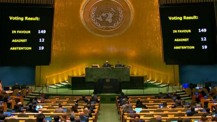 یو این جنرل اسمبلی :غزہ میں مستقل جنگ بندی کی قرارداد منظور
