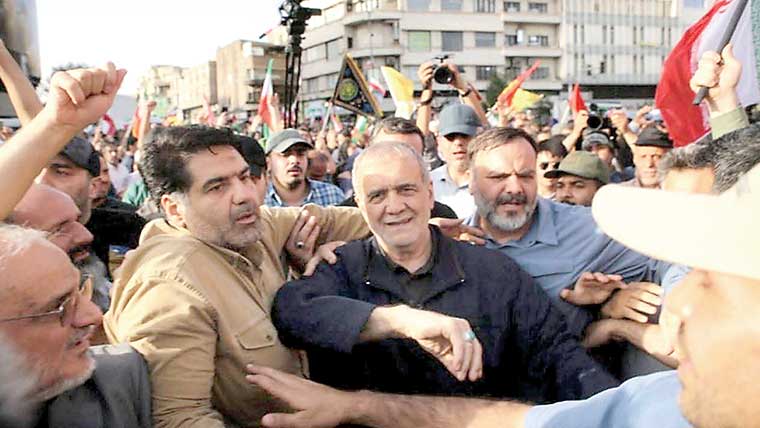 تہران (اے ایف پی)ایران کے صدر مسعود پزَشکیان نے اتوار کو تہران میں ایک احتجاجی مظاہرے میں شرکت کی جس میں امریکی حملوں کے خلاف نعرے بازی کی گئی۔