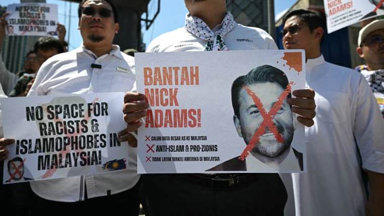 مظاہرین نے صدر ٹرمپ کی جانب سے نک ایڈمز کی بطور سفیر نامزدگی کی شدید مخالفت کی، مظاہرین کا کہنا تھا نامزد سفیر نک ایڈمز اسرائیل کے حامی ہیں۔یہ احتجاج وزیر اعظم انور ابراہیم کی جماعت ’پاکاتان حاراپان‘ کے یوتھ ونگ کے زیر اہتمام کیا گیا ۔واضح رہے ملائشیا کے اسرائیل کیساتھ کسی قسم کے سفارتی تعلقات نہیں ۔