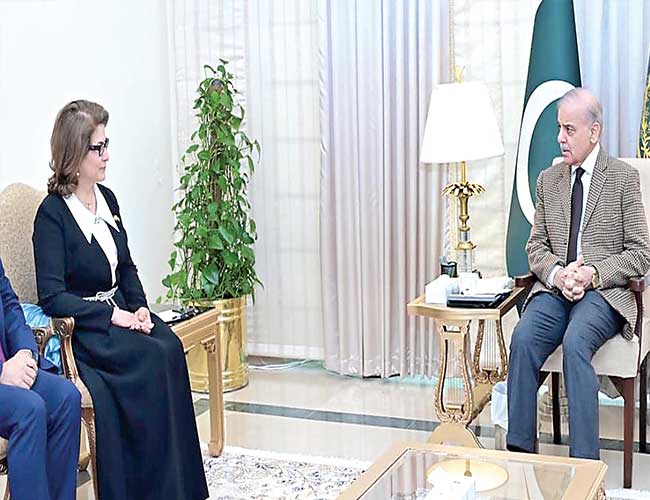 اسلام آباد:وزیر اعظم شہباز شریف سے تاجکستان کی وزیر ثقافت ستاریون متلوبخون امان زادہ ملاقات کرتے ہوئے