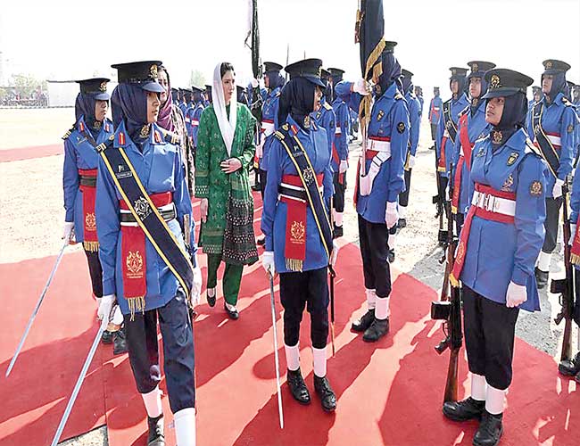 بینظیر آباد:خاتون اول آصفہ بھٹو بختاور کیڈٹ کالج میں پاسنگ آؤٹ پریڈ کا معائنہ کرتے ہوئے