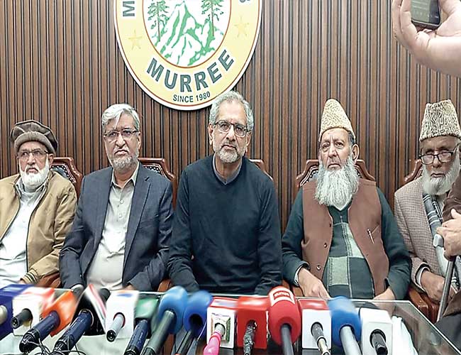 سابق وزیراعظم شاہد خاقان عباسی مری پریس کلب میں پریس کانفرنس کرتے ہوئے