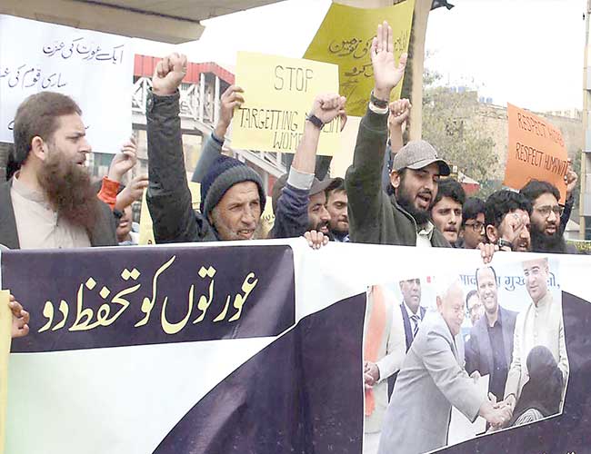 راولپنڈی:سول سوسائٹی کے ارکان بھارتی وزیراعلیٰ کی طرف سے خاتون سے بدسلوکی کیخلاف احتجاج کرتے ہوئے