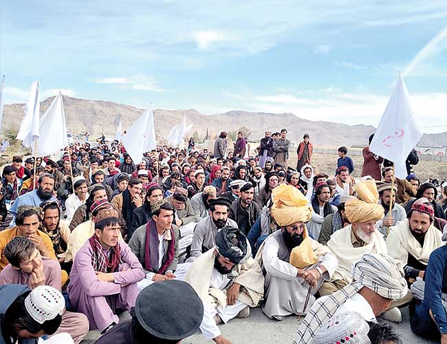 جنوبی وزیرستان :پیدل امن مارچ کرنے والے مظاہرین نے وانا کے ایگلو گیٹ پہنچ کردھرنا دے رکھا ہے