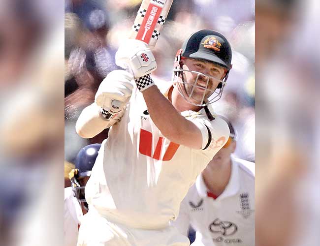 ایڈیلیڈ:انگلینڈ کیخلاف ایشز ٹیسٹ میں آسٹریلوی بیٹر ٹریوس ہیڈ شاٹ کھیلتے ہوئے