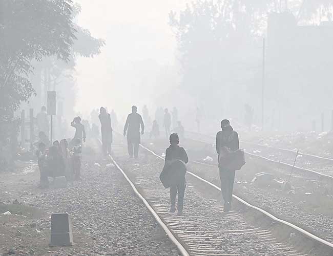 لاہور :صبح کے وقت بادامی باغ کے علاقے میں سموگ کا منظر