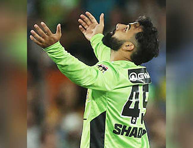 کینبرا:ہیٹ کیخلاف بگ بیش لیگ میچ میں ٹیم تھنڈر کے شاداب وکٹ لینے پر شاداں