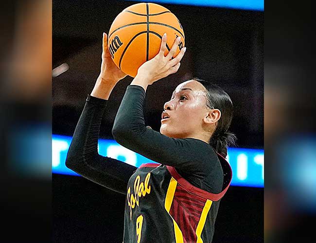 سان فرانسسکو:گولڈن کیخلاف ویمنز باسکٹ بال میچ میں ٹیم کیلیفورنیا کی جیزی گیند باسکٹ کرتے ہوئے