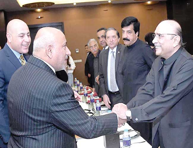 کربلا: صدر آصف علی زرداری اپنے اعزاز میں منعقدہ ظہرانے میں گورنر ڈاکٹر ناصیف جاسم سے مصافحہ کرتے ہوئے