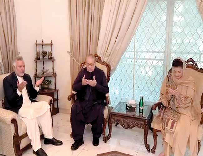 لاہور:نواز شریف اور وزیراعلیٰ مریم نواز رکن پنجاب اسمبلی میاں مرغوب سے انکی اہلیہ کے انتقال پر تعزیت کے بعد فاتحہ خوانی کرتے ہوئے