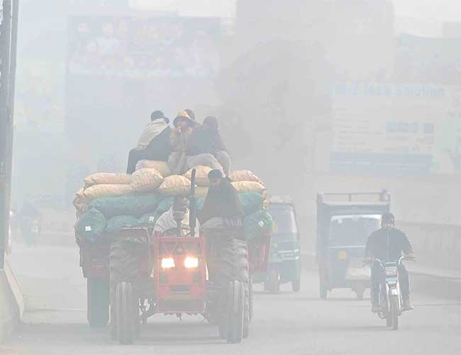 لاہور:دریائے راوی کے پرانے پل پرصبح کے وقت شدید سموگ کا منظر